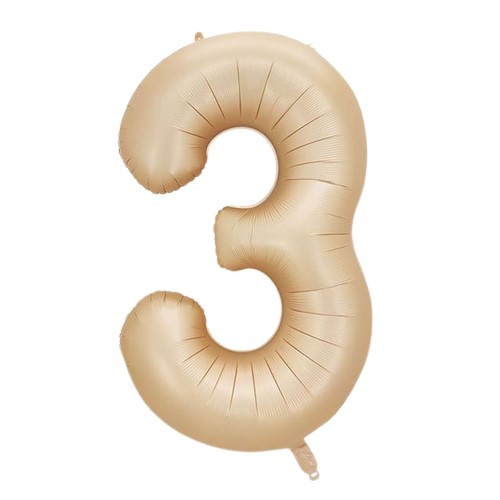 Balon foliowy cyfra 3 beżowa boho, 40 cali