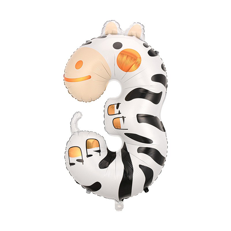 Balon foliowy cyfra 3-40 cali, Zwierzątka dla dzieci Balon na powietrze i na hel. Opakowanie 10 szt