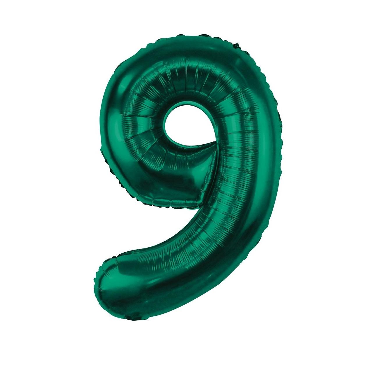 Balon foliowy cyfra 9 butelkowa zieleń, 32cale zielony