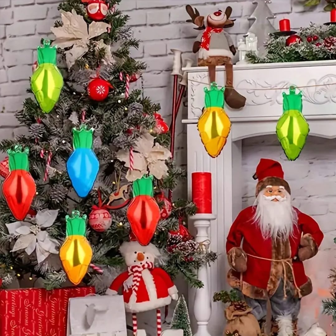 Balony foliowy girlanda Lampki. W zestawie 8szt Lampek Wymiary 1szt 29cm x50cm + tasiemka. Opakowanie 10szt
