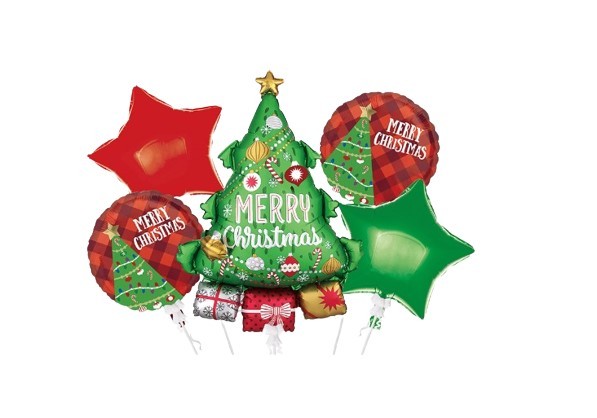 Zestaw 5 szt balonów na Święta. Choinka - 32 cali Balon okrągły 2szt - 18 cali Balon gwiazda 2szt - 18 cali