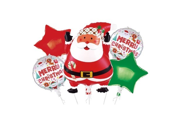 Zestaw 5 szt balonów na Święta. Mikołaj - 27 cali Balon okrągły 2szt - 18 cali Balon gwiazda 2szt - 18 cali