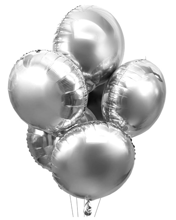 Balon foliowy Kula. Kolor srebrny. Rozmiar 45 cm- 18 cali. Balon na powietrze i na hel, unosi się po napompowaniu. 1 zestaw – 50 szt.