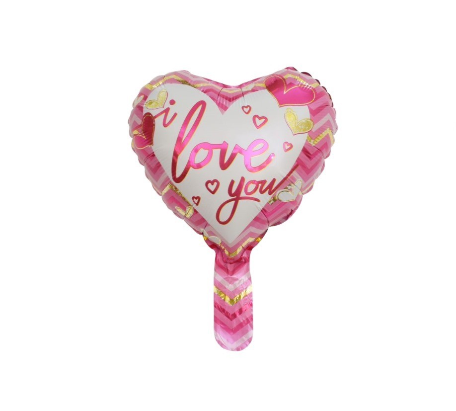 Balon foliowy serce 10cali różowe 20szt + patyczki Walentynki