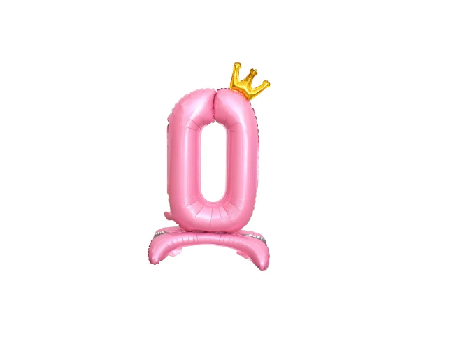 Balon foliowy stojący cyfra 0 różowa z koroną, 34cale