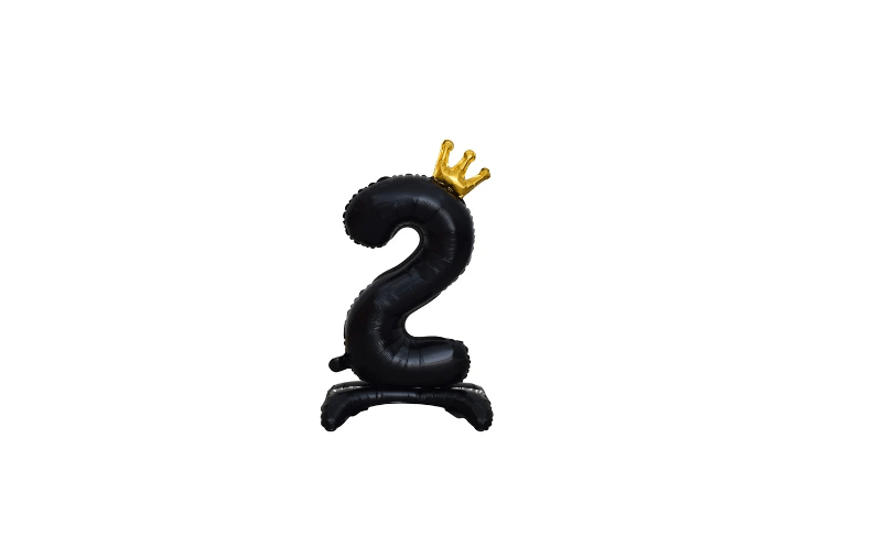 Balon foliowy stojący cyfra 2 czarna z koroną, 34cale