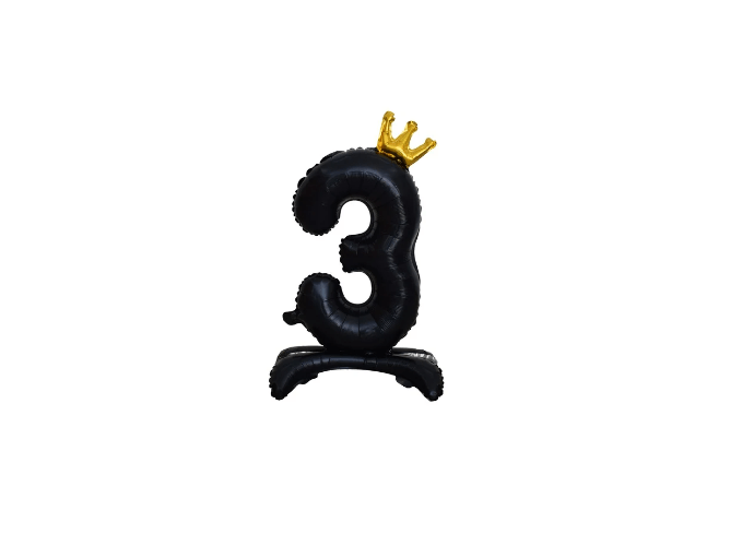 Balon foliowy stojący cyfra 3 czarna z koroną, 34cale