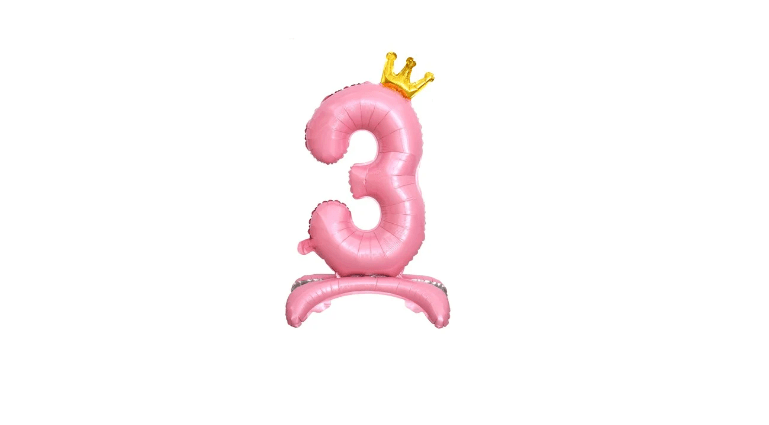 Balon foliowy stojący cyfra 3 różowa z koroną, 34cale