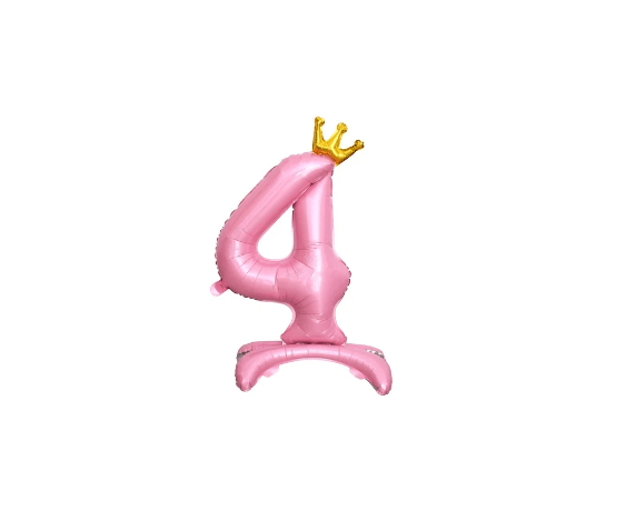Balon foliowy stojący cyfra 4 różowa z koroną, 34cale