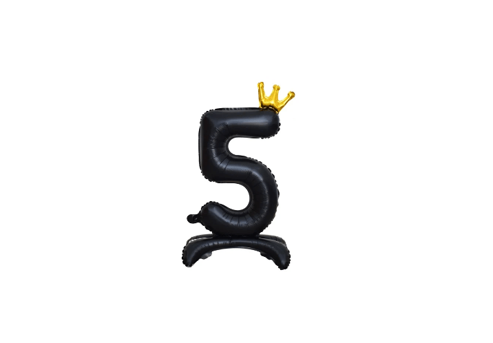 Balon foliowy stojący cyfra 5 czarna z koroną, 34cale