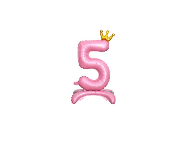 Balon foliowy stojący cyfra 5 różowa z koroną, 34cale