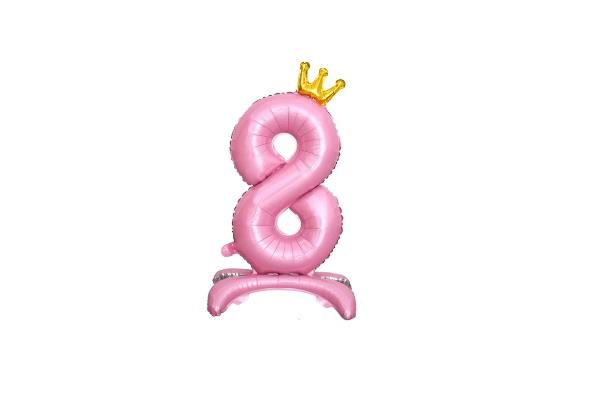 Balon foliowy stojący cyfra 8 różowa z koroną, 34cale