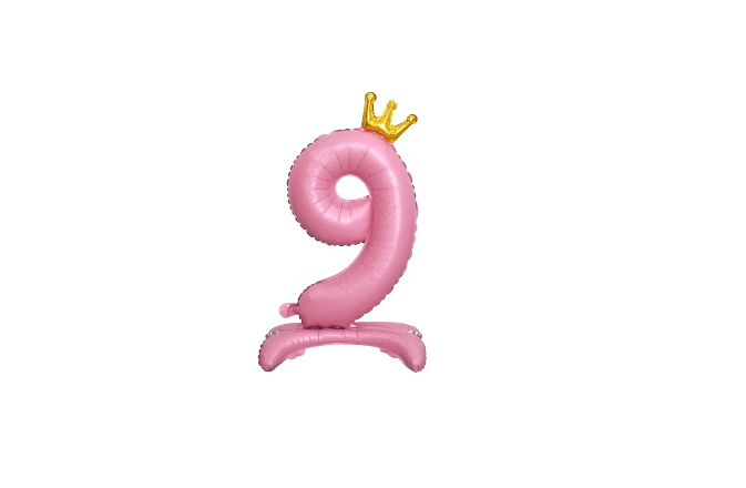 Balon foliowy stojący cyfra 9 różowa z koroną, 34cale
