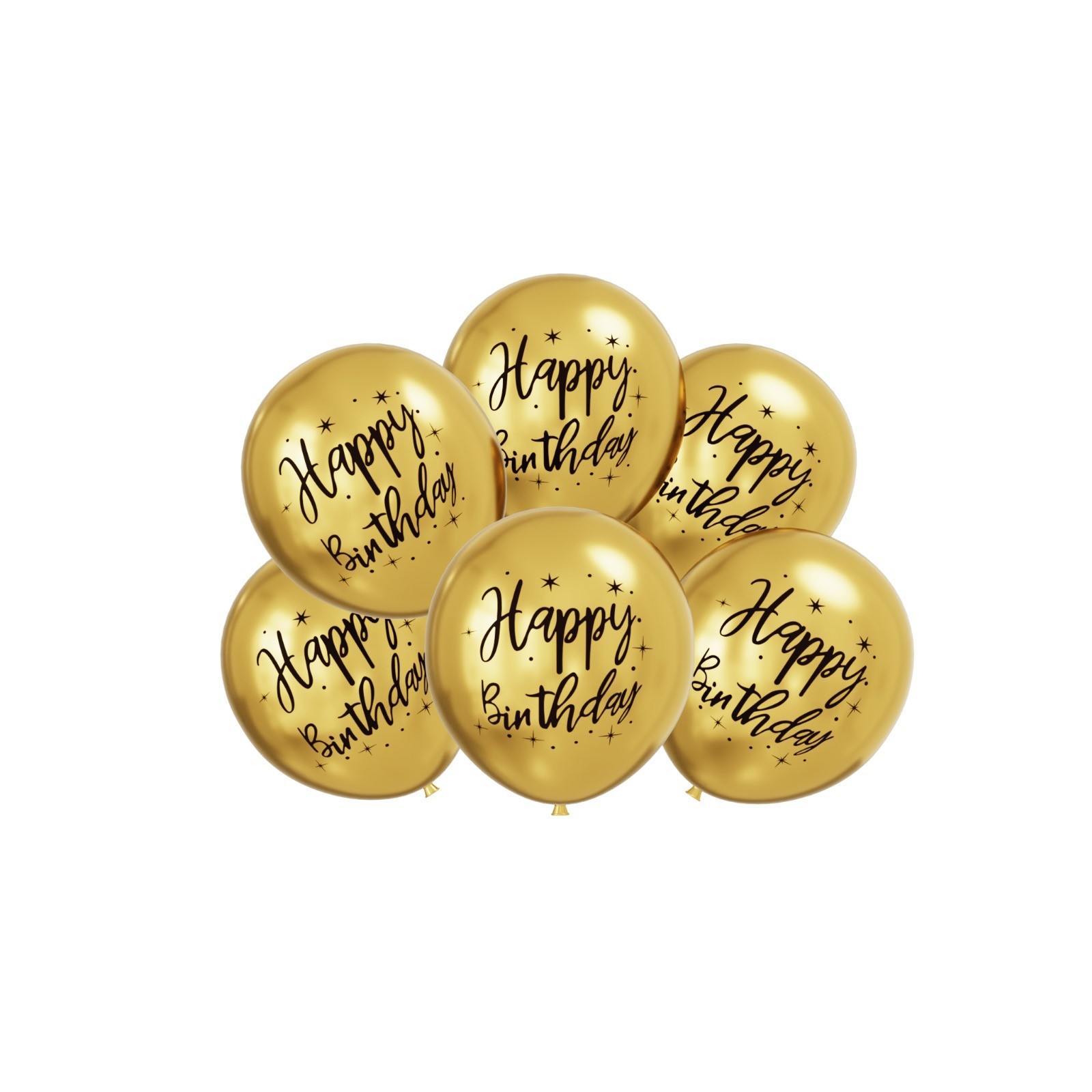 Balon lateksowy, 6szt Złoty chrom z napisem Happy Birthday. Wymiary 30cm – 12cali