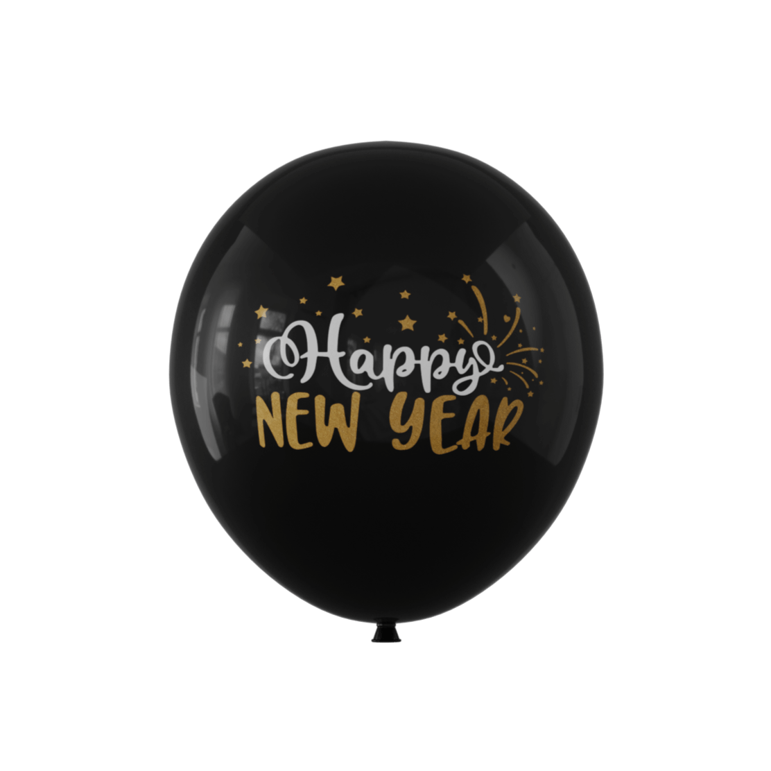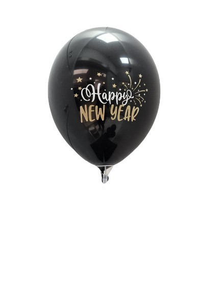 Balon lateksowy czarny ze złotym napisem Happy New Year,12cali 100szt