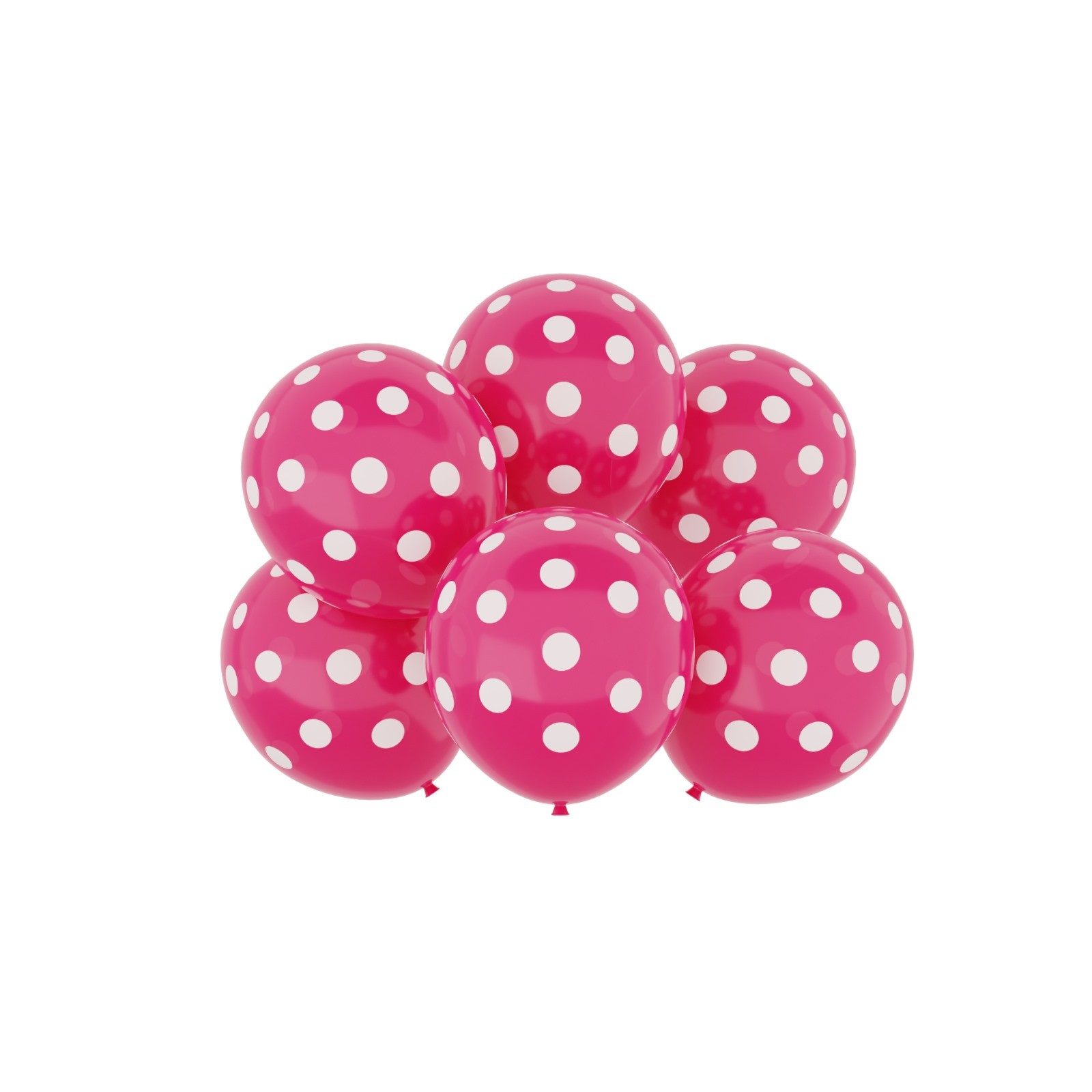 Balon lateksowy fuksja w kropki , 12 cali 6szt
