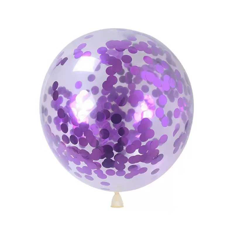 Kolor fioletowy 12 cali - 30 cm. 100szt w paczce. Balon transparentny z dodatkiem konfetti.