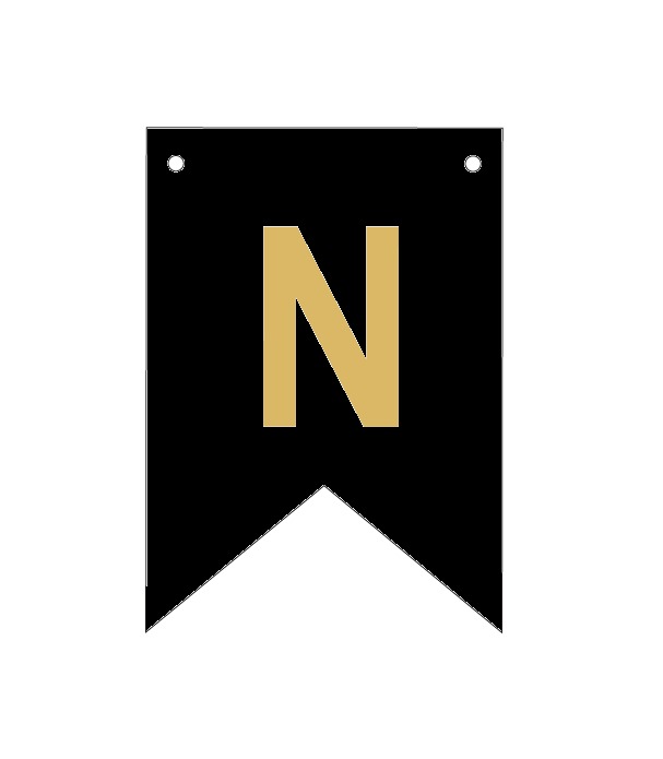 Baner czarno złoty litera N 16,5 cm