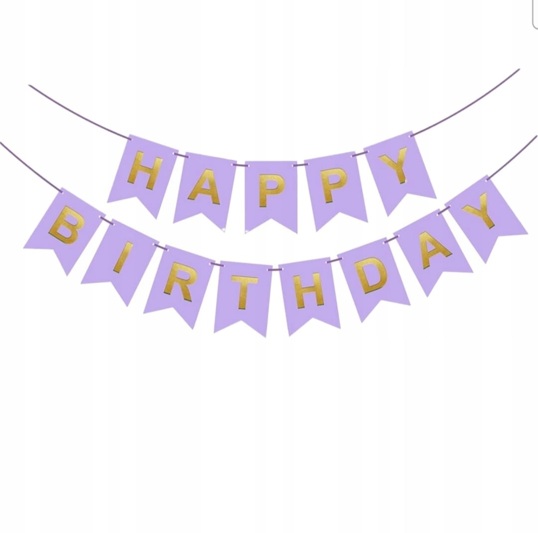 Baner ,fioletowy ze złotymi literami, Happy Birthday