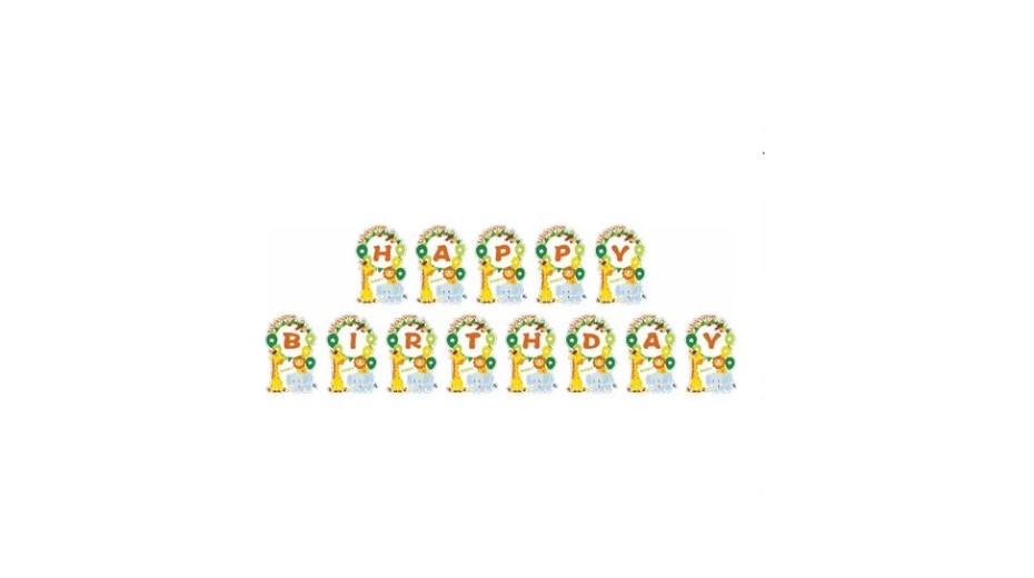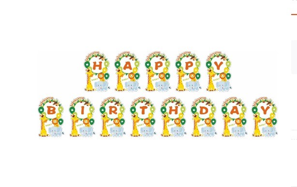 Baner Happy Birthday, Zwierzątka W zestawie taśma. Długość baneru ok 180 cm, długość taśmy ok 250 cm Opakowanie 12 szt