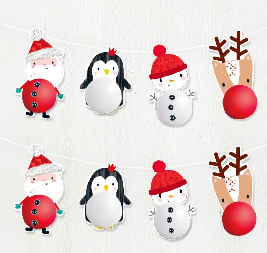 Baner Świąteczny. Długość ok 150cm, wysokośc około 16cm Kreatywny baner dla dzieci z balonikami. Opakowanie 12 szt