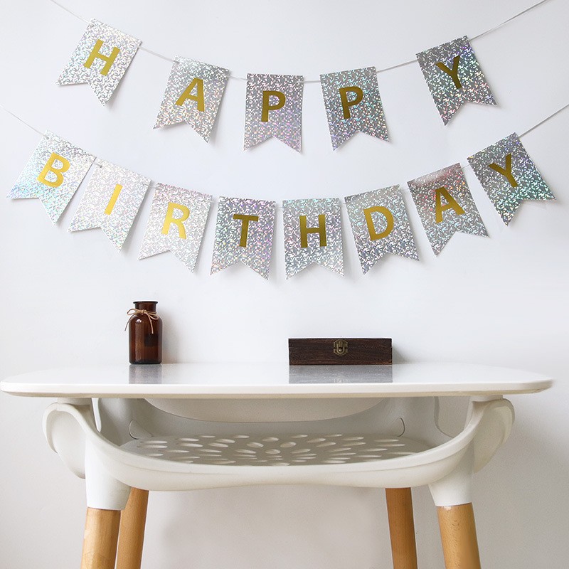 Baner srebrny Happy Birthday , srebrny holograficzny