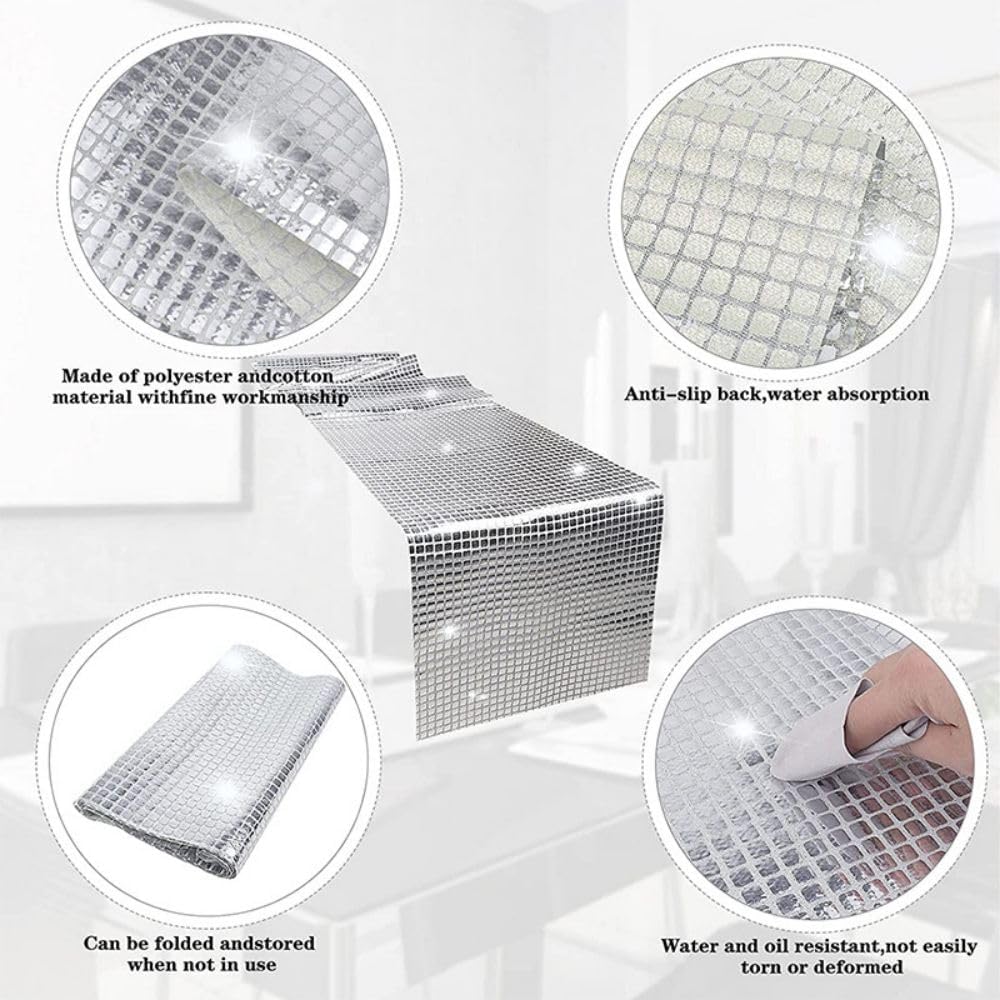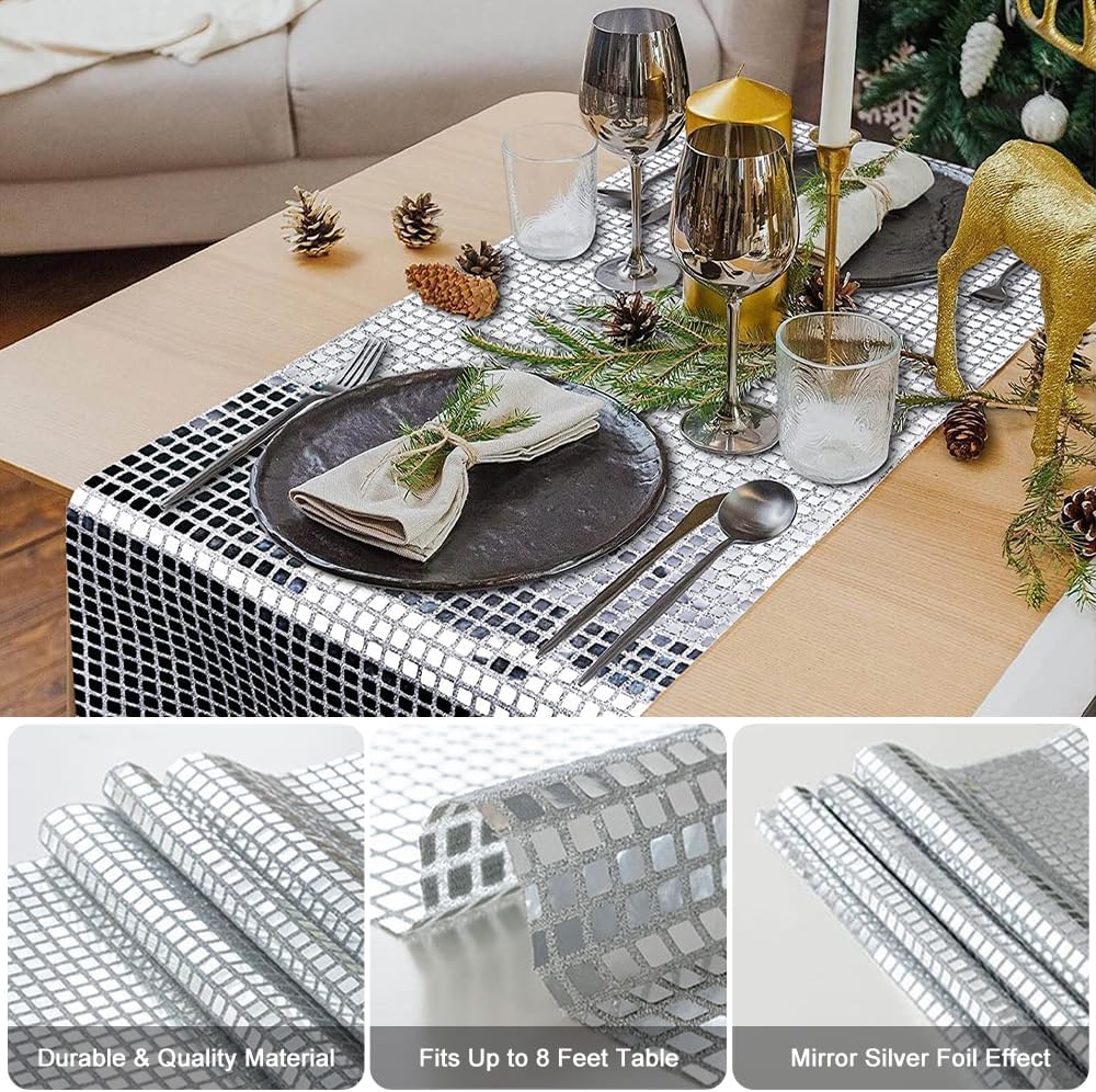 Strona głównaDekoracja na stółObrusyBieżnik na stół srebrny błyszczący 30x275cm, disco