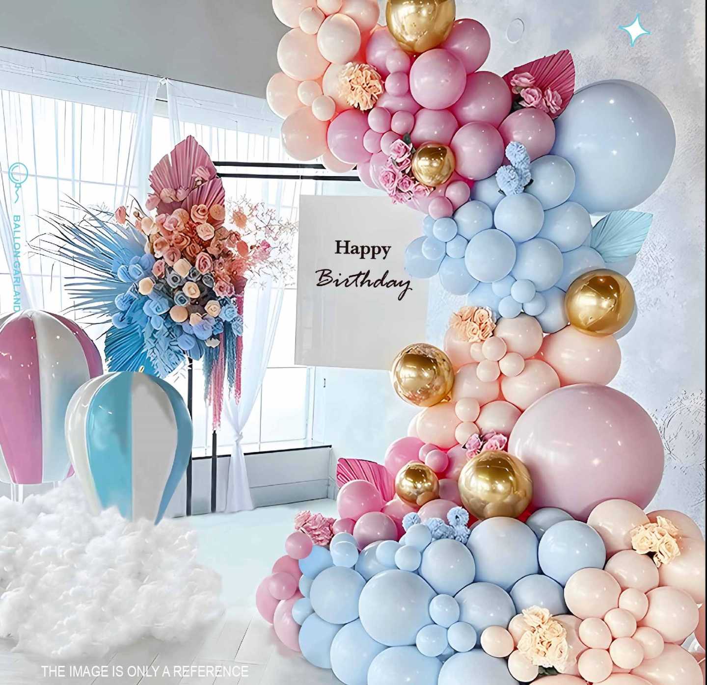 Girlanda balonowa 115szt Zestaw zapakowany w kartonowe pudełko. Kolor balonów różówo złoto niebieski