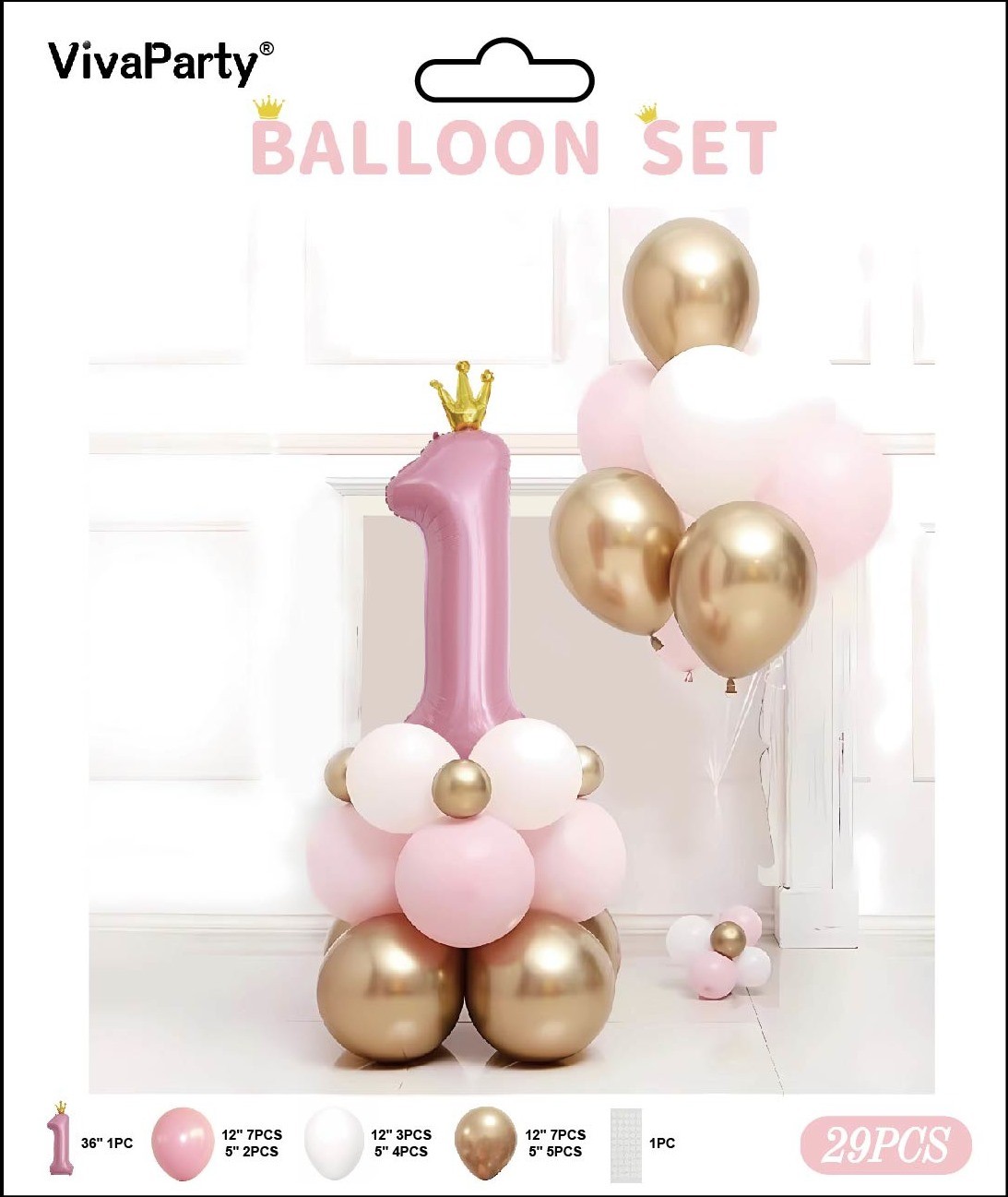 Girlanda balonowa 29szt Na roczek. Kolor balonów różówo złoto biały