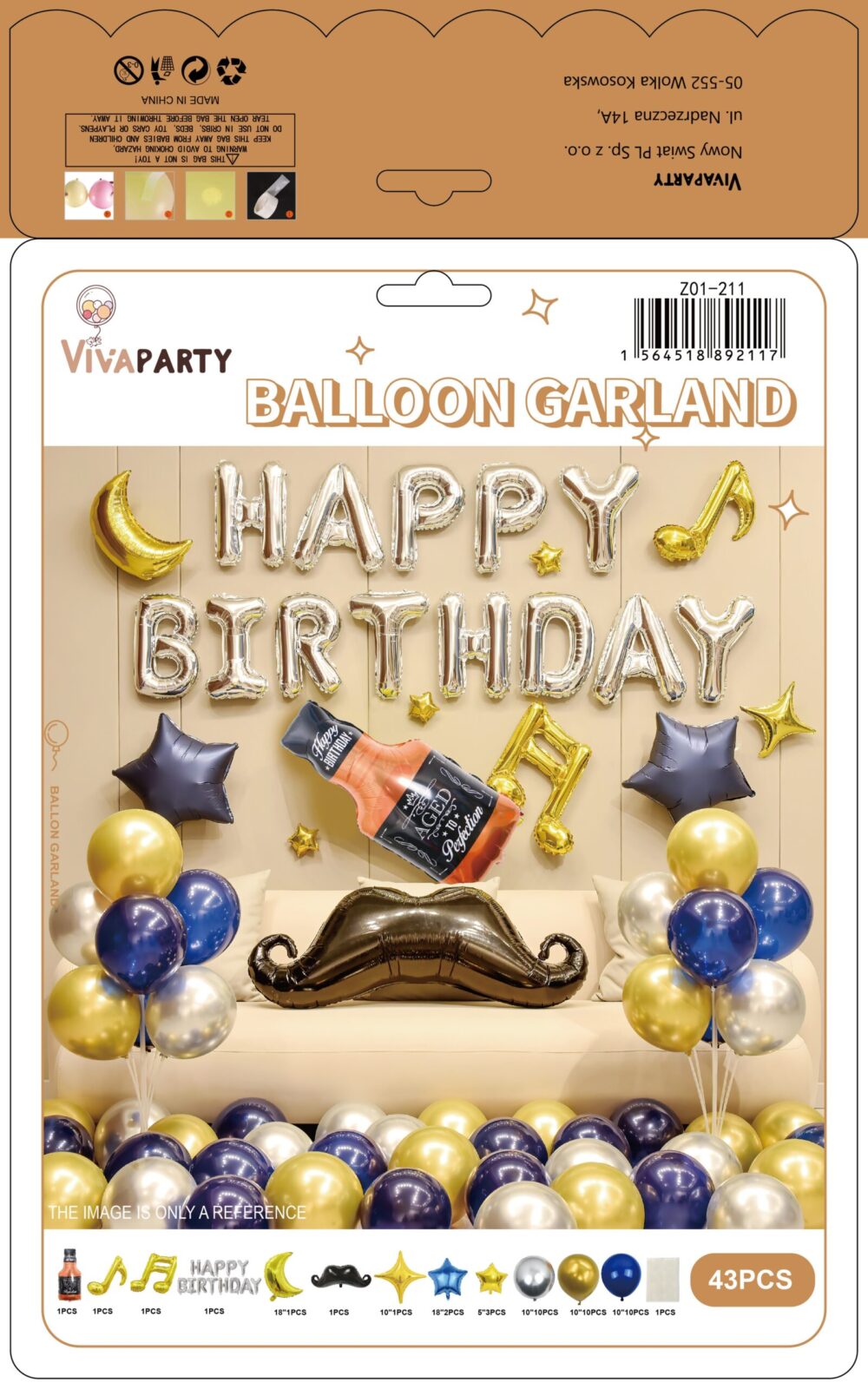 Girlanda balononowa zestaw balonów granatowo złoty 124szt