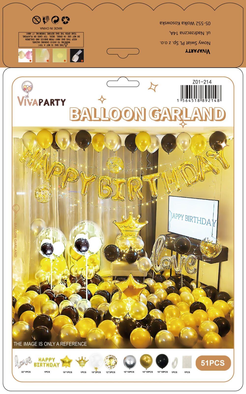 Girlanda balononowa zestaw balonów czarno złoty 96szt