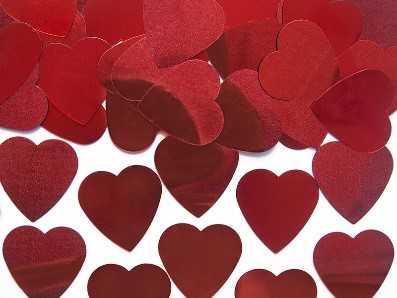 Konfetti foliowe , serca czerwone.