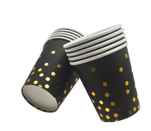 Kubeczki papierowe czarne w złote kropki 6szt