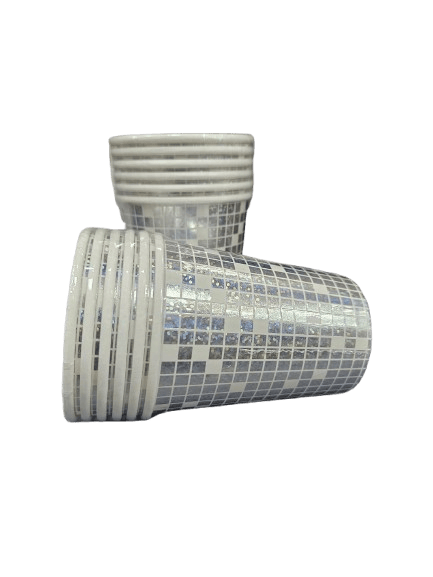 Kubeczki papierowe. Wzór- Disco Kubeczki w kolorze srebrnym holograficznym