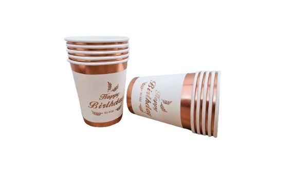 Strona głównaDekoracja na stółKubeczkiKubeczki papierowe rose gold Happy Birthday 10szt