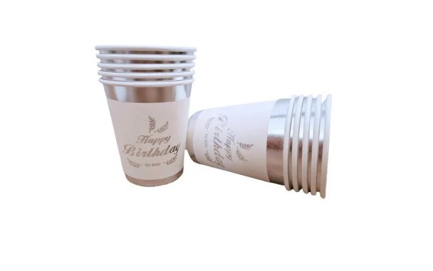 Kubeczki papierowe srebrne Happy Birthday 10szt