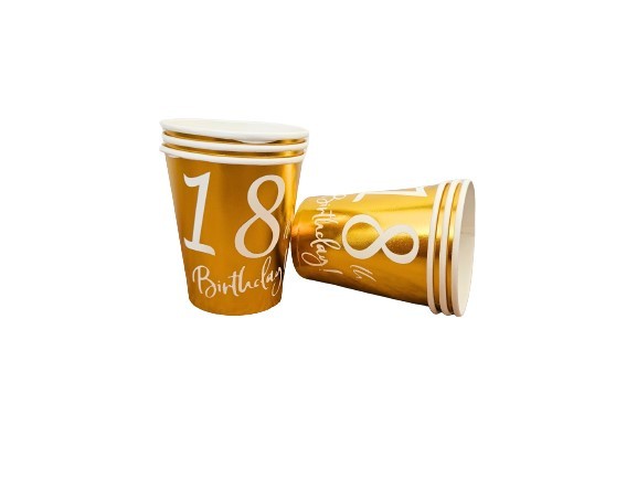 Kubeczki papierowe złote, na 18 urodziny, 6szt