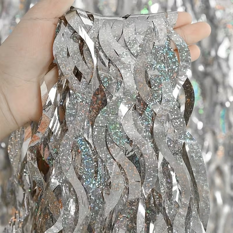 Kurtyna imprezowa paski. Kolor srebrna , holograficzna fala