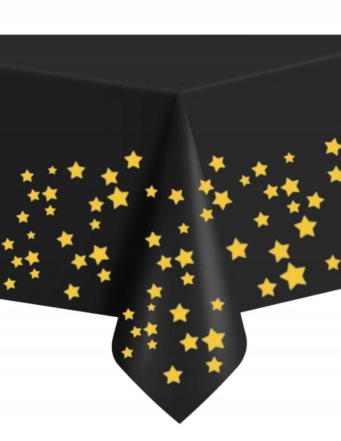 Obrus czarny w złote gwiazdki foliowy 137x274cm