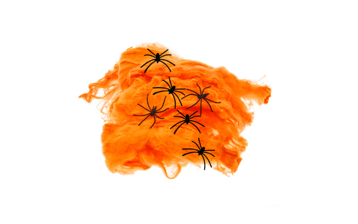 Pajęczyna Halloween pomarańczowa 60g, 6 pajaków girlanda