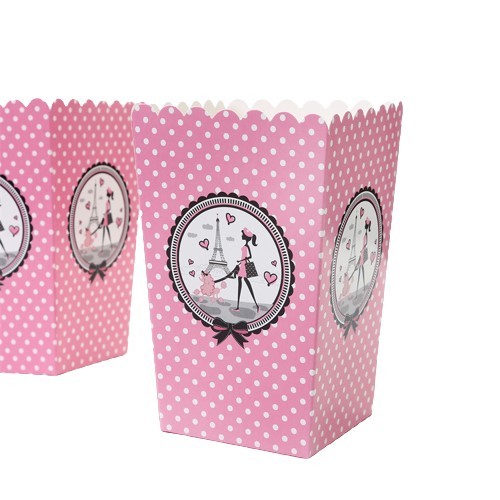 Pudełka na popcorn różowe Paryż 6szt