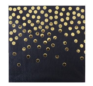 Serwetki czarne w złote kropki.