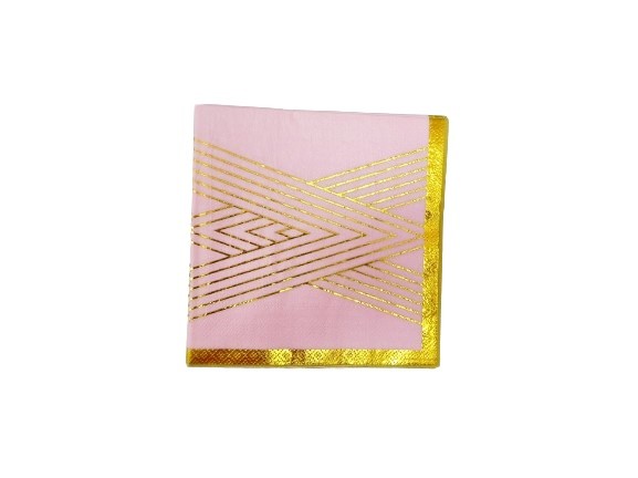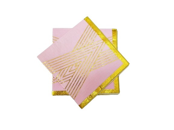 Serwetki różowe w złote paski.