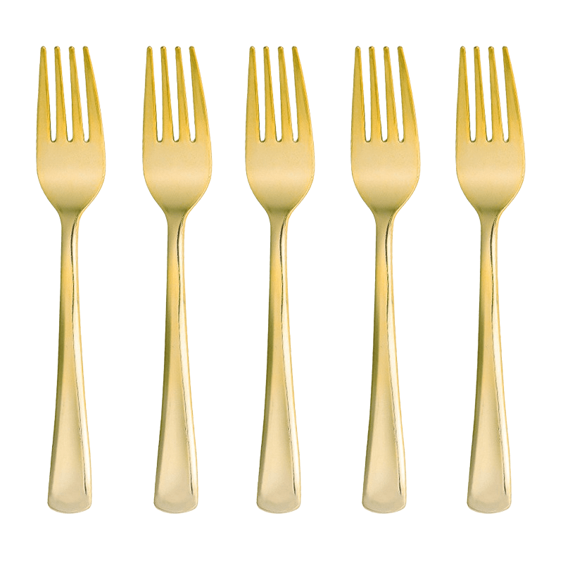 Sztućce jednoroazowe. Kolor złoty. Wykonane z plastiku. Długość ok 18cm. 1 opakowanie - 10szt
