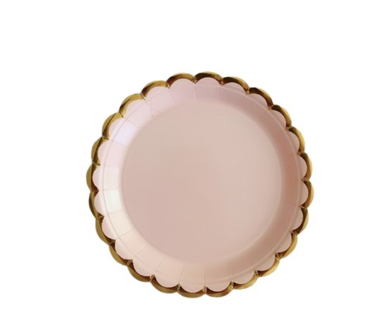 Talerzyki papierowe. Kolor bezowy ze złotą obwódką, 7cali. 1 opakowanie – 6szt Minimum zakupu 12 opakowań
