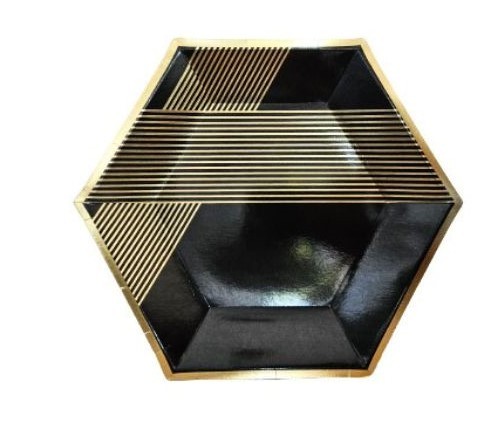 Talerzyki papierowe czarne w złote paski 7cali 6szt