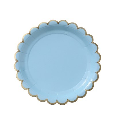 Talerzyki papierowe. Kolor niebieski ze złotą obwódką, 7cali. 1 opakowanie – 6szt Minimum zakupu 12 opakowań