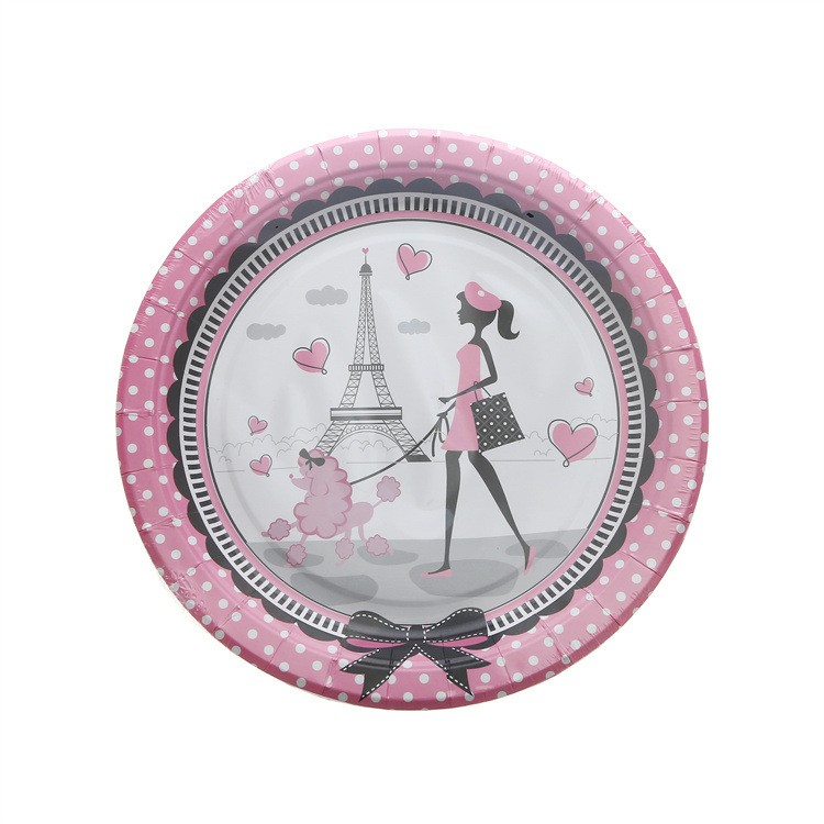 Talerzyki papierowe Paryż różowe 7cali, 6szt