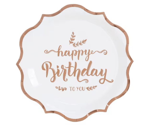 Talerzyki papierowe rose gold Happy Birthday ,10szt