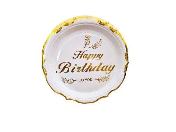 Talerzyki papierowe złote Happy Birthday ,10szt